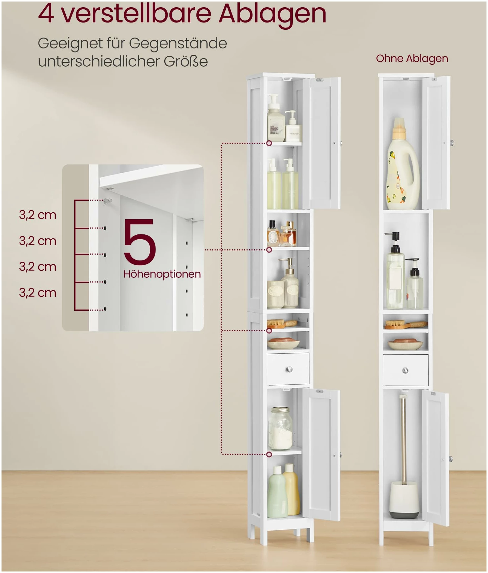 - Justerbare hyller gir fleksibel oppbevaring