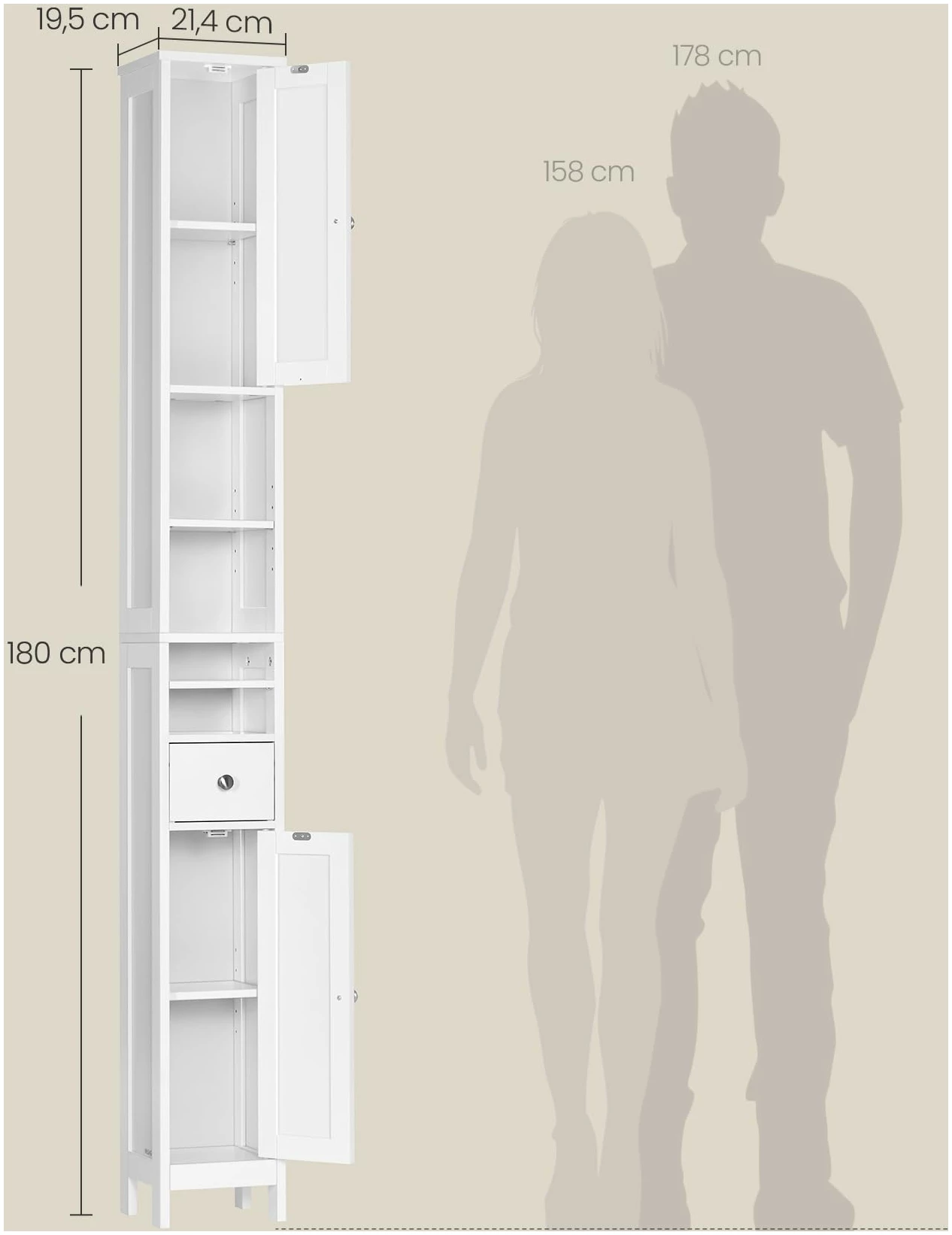 Mål: 19,5 x 21,4 x 180 cm (D x B x H)