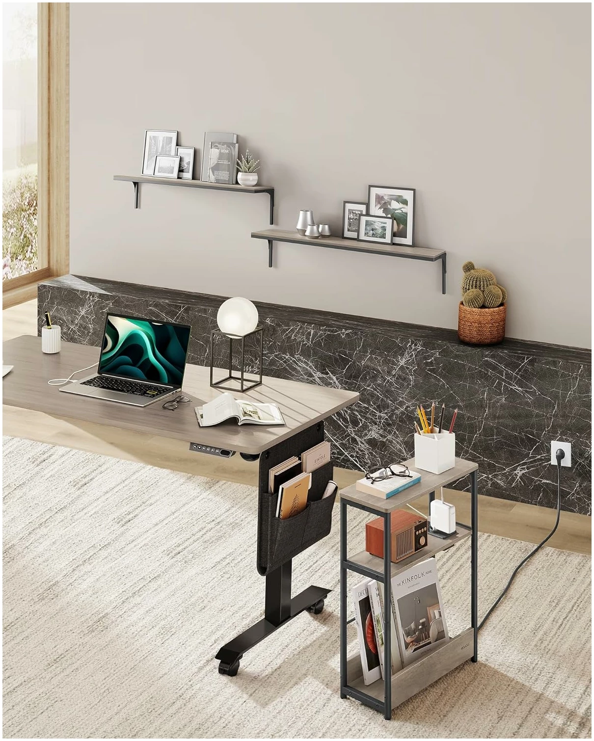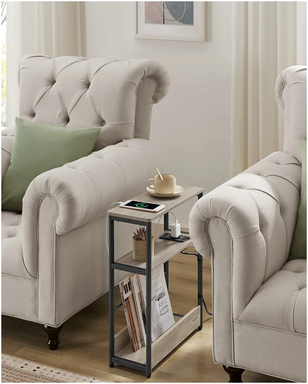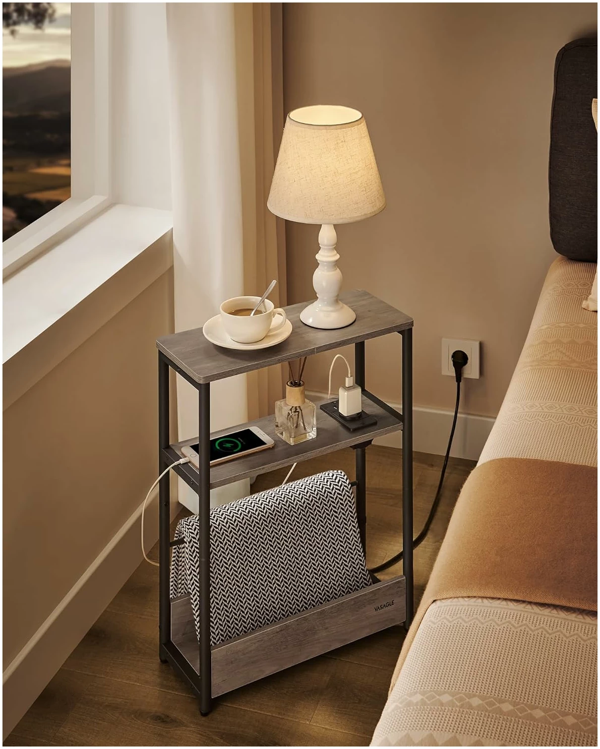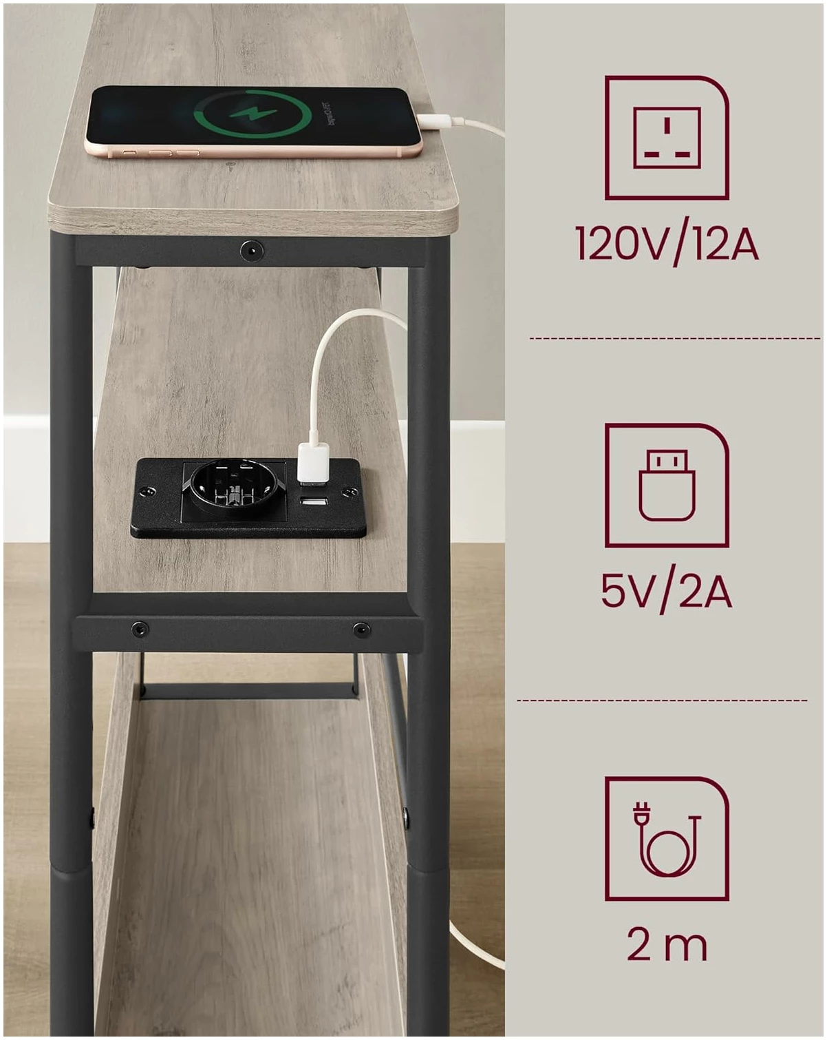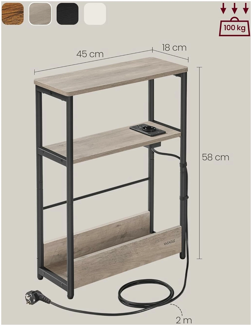✔ Passer for små rom: Mål 18 x 45 x 58 cm, smalt nattbord med 3 nivåer ✔ Innebygd strømkontakt: 1 stikkontakt og 2 USB-porter, 2 m kabel ✔ Flere oppbevaringsmuligheter: 3 nivåer for bøker eller hverdagslige gjenstander ✔ Solid og stabil: Ramme i stål og sponplater av høy kvalitet, tåler opptil 100 kg ✔ Enkel og rask montering: Deler med nummerering og illustrert monteringsveiledning